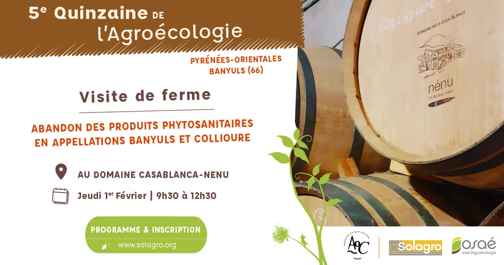 (ou Domaine de la Casa Blanca – Nenu -16 avenue de la gare 66650 Banyuls-sur-mer en cas de météo défavorable)