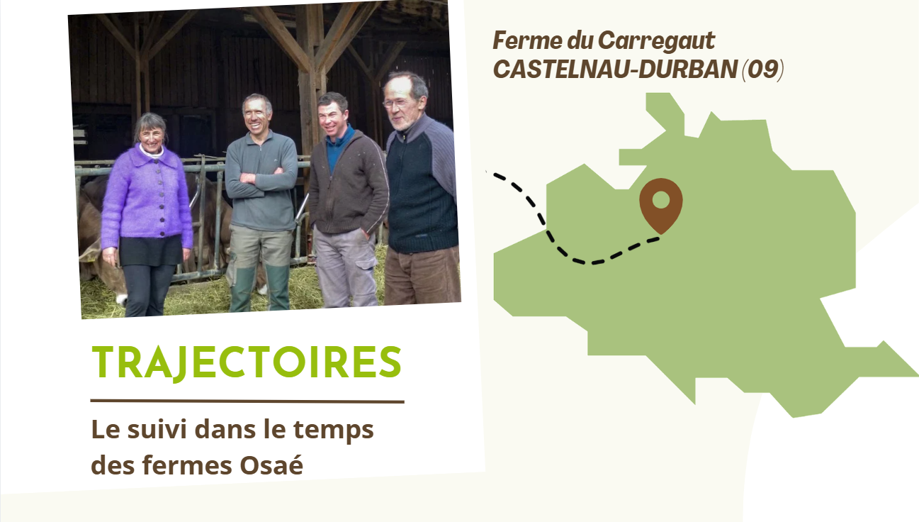 Il y a presque 50 ans que la ferme du Carregaut a été fondée dans les Pyrénées Ariégeoises. Cette exploitation de bovins lait pour transformation fromagère s’est développée autour de l’ambition de construire un système autonome, avec notamment l’installation d’un séchoir solaire de foin, et le choix d’un cheptel de Brune des Alpes, une race mixte et rustique.