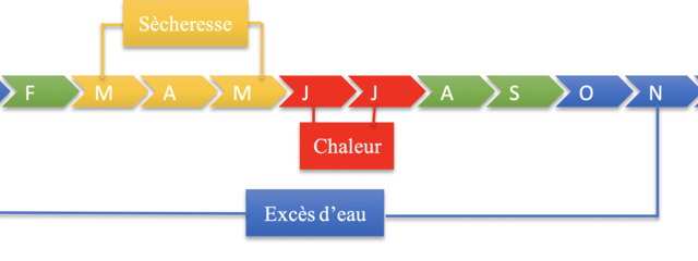 Cette approche climatique a été possible grâce aux résultats du projet LIFE+ AgriAdapt : https://agriadapt.eu/objetives/?lang=fr. Ce projet a pour objectif d’évaluer la vulnérabilité des principales productions agricoles face au dérèglement climatique et aussi de proposer des plans d’adaptation durables pour accroitre la résilience des systèmes agricoles.
