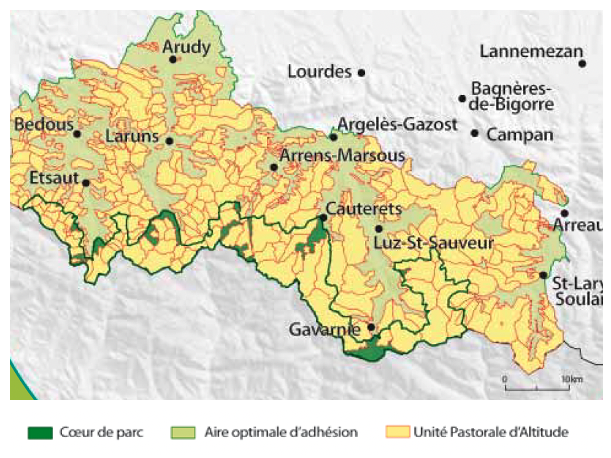 Le Parc national des Pyrénées dont la superficie totale est de 252 059 ha est composé de 271 UPA (Unités Pastorales d’Altitude). Ces UPA ont une superficie de 164 156 ha soit 65 % du territoire du Parc.