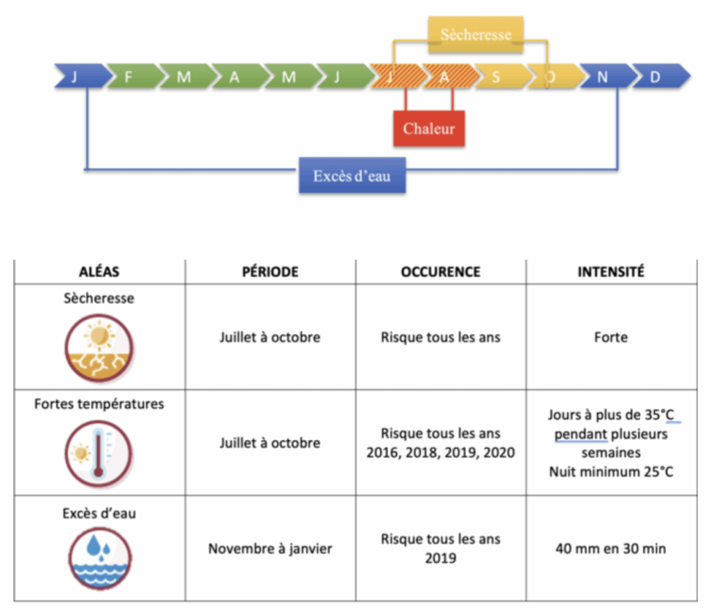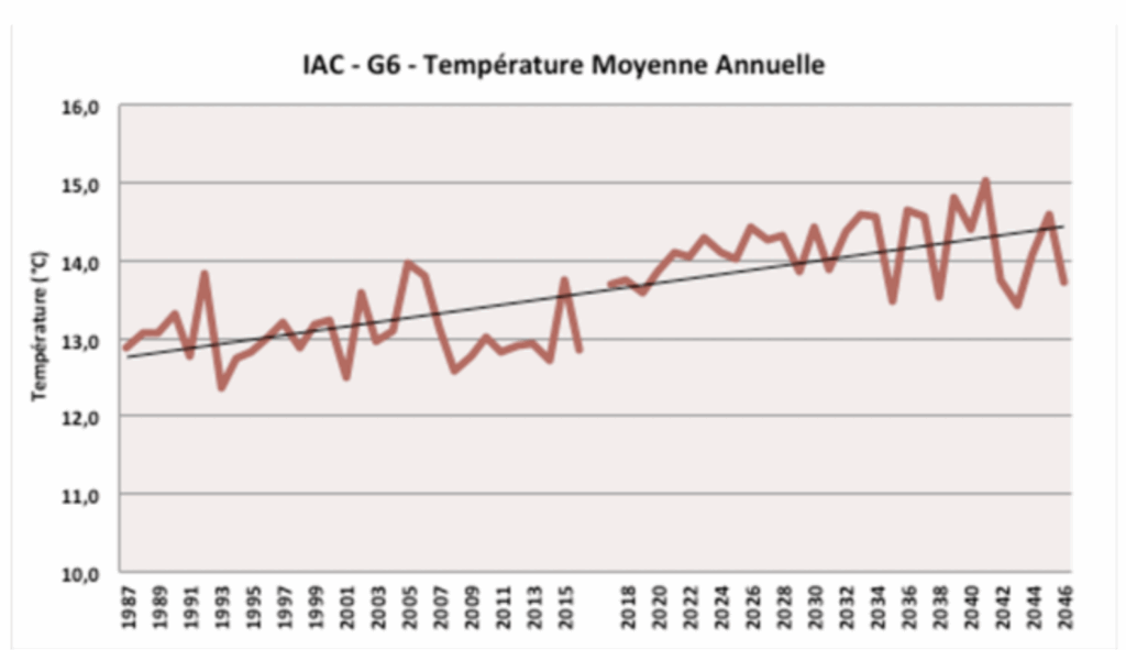 Cette approche climatique a été possible grâce aux résultats du projet LIFE+ AgriAdapt : https://agriadapt.eu/objetives/?lang=fr. Ce projet a pour objectif d’évaluer la vulnérabilité des principales productions agricoles face au dérèglement climatique et aussi de proposer des plans d’adaptation durables pour accroitre la résilience des systèmes agricoles.