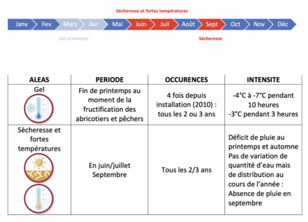 - Mise en place de la lutte par aspersion contre le gel : achat d’une sonde en 2022 pour suivre les températures et lancer l’irrigation sur pêchers et abricotiers.